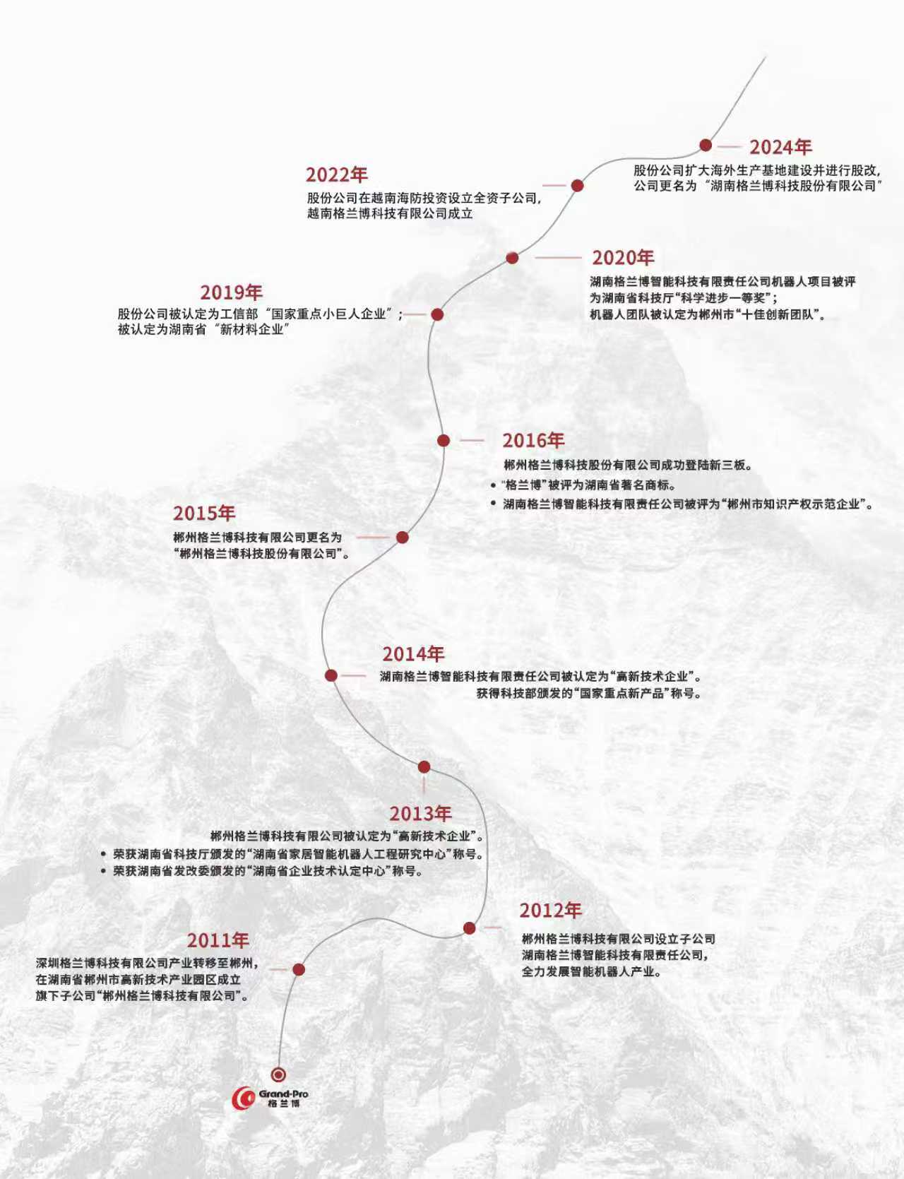 历经⼗余载,格兰博发展成为智能服务机器⼈/电池领域的品牌企业。